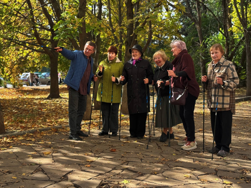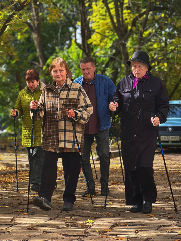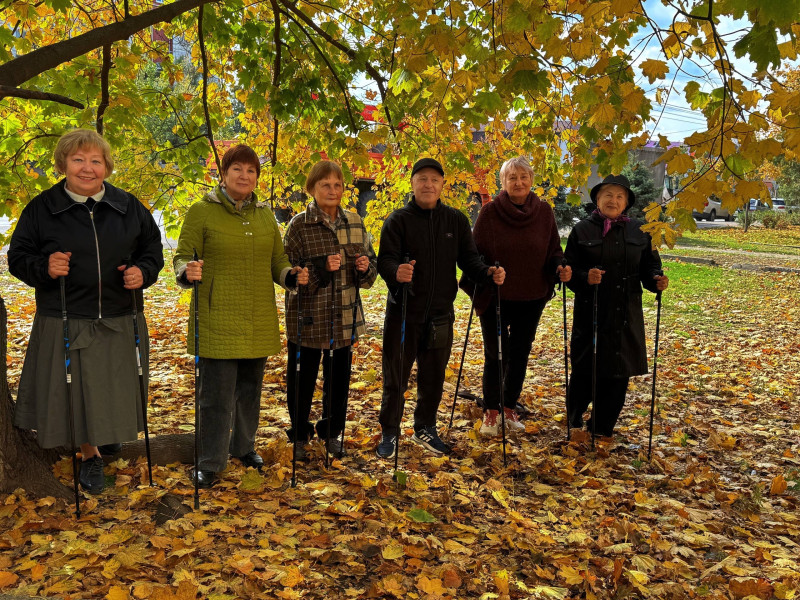 Сегодня «серебряные» волонтеры занимались скандинавской ходьбой. Многие из получателей освоили активную ходьбу уже давно, но были среди них и те, кто только учился этому простому на первый взгляд занятию.