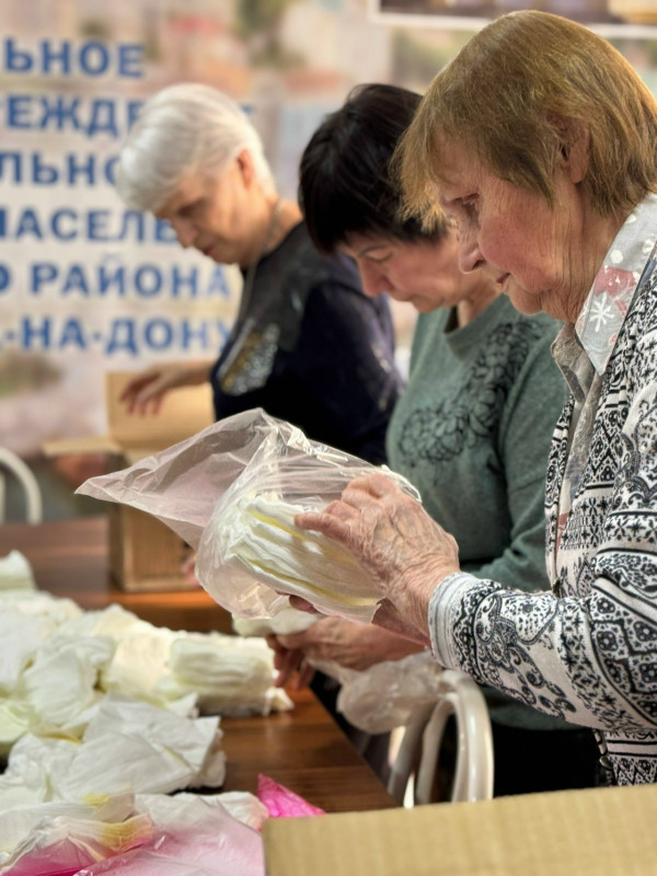 В рамках региональной программы «Активное долголетие» и городского проекта «Время активных» в центре адаптации и социальной реабилитации участников СВО и членов их семей «СВОИ» «серебряные» волонтеры продолжают помогать фронту. Неравнодушные получатели социальных услуг центра социального обслуживания населения Пролетарского района города Ростова-на-Дону сворачивали медицинские салфетки для участников спецоперации и раненых бойцов, находящихся в госпиталях.