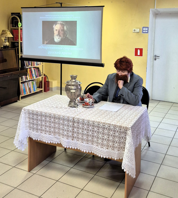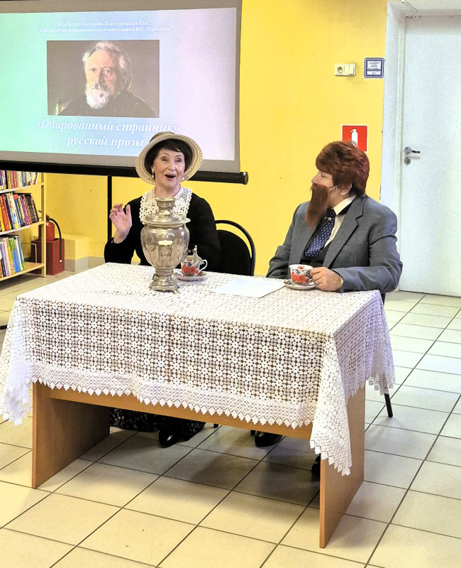 Атмосфера в зале с первых минут располагала к неторопливому разговору. Мягкий свет ламп, знакомые корешки книг на стеллажах, уютный чайный стол – всё это создавало особое настроение. Разгорелся живой разговор о языке Лескова – сочном, ярком, полном народных слов и оборотов. Участники встречи с интересом листали страницы знакомых произведений «Левша», «Леди Макбет Мценского уезда», «Тупейный художник», вновь и вновь раз удивляясь замысловатым сюжетам.