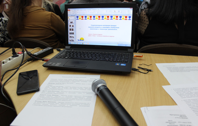 Елена Ивановна выступила с презентацией на тему: «Социокультурная интеграция граждан пожилого возраста и инвалидов посредством вовлечения в творческую жизнь!».