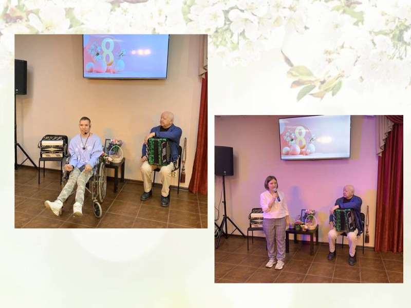 Мужчины подарили прекрасным дамам подарки, сделанные своими руками в инклюзивной мастерской. Праздник завершился дружественным чаепитием.