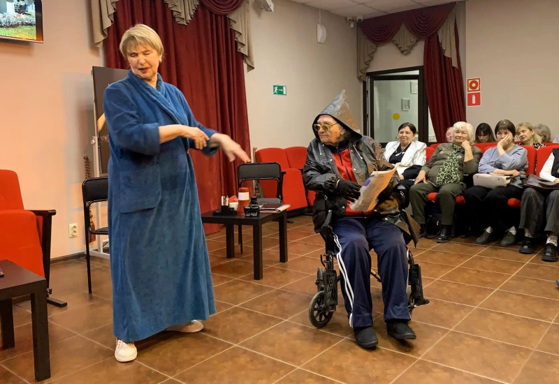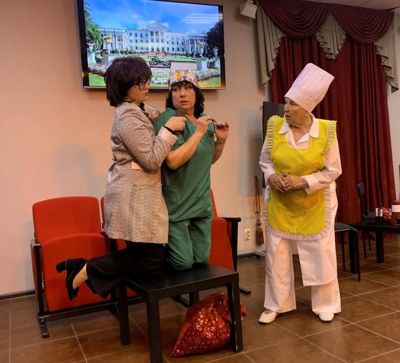 ????Актеры социокультурного проекта «Театр на ладони» на сценической площадке Центра социального обслуживания населения Пролетарского района города Ростова-на-Дону показали зрителю генеральный прогон премьерного спектакля «Громкая сенсация» по комедийной пьесе К. Мининой.