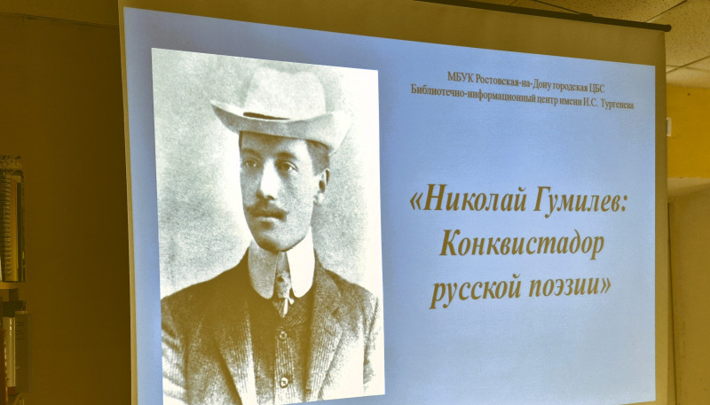 В Центре социального обслуживания населения Пролетарского района города Ростова-на-Дону в партнёрских отношениях с БИЦ им. И.С. Тургенева успешно реализуется работа факультета «Живое слово». 14 апреля «серебряные» получатели социальных услуг совершили погружение в эпоху поэзии Серебряного века на литературной встрече «Конквистадор русской поэзии», посвящённой творчеству поэта Николая Гумилёва.