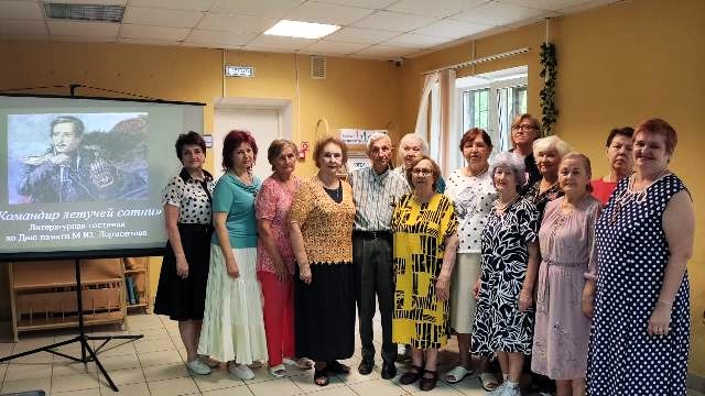 «Серебряные» волонтеры Центра социального обслуживания населения Пролетарского района города Ростова-на-Дону стали участниками литературной гостиной «Командир летучей сотни», посвященной Дню памяти М.Ю. Лермонтова, в БИЦ имени И.С. Тургенева.