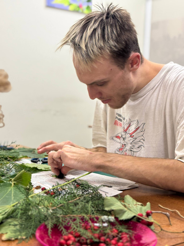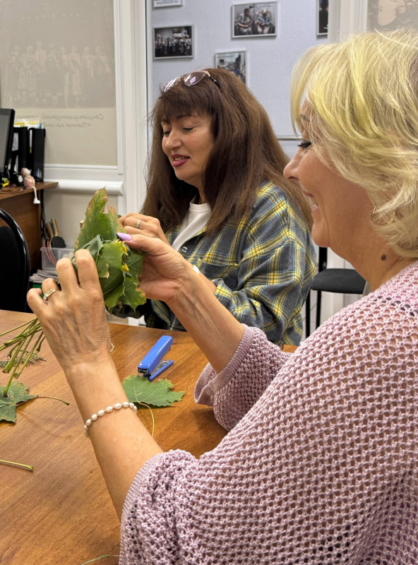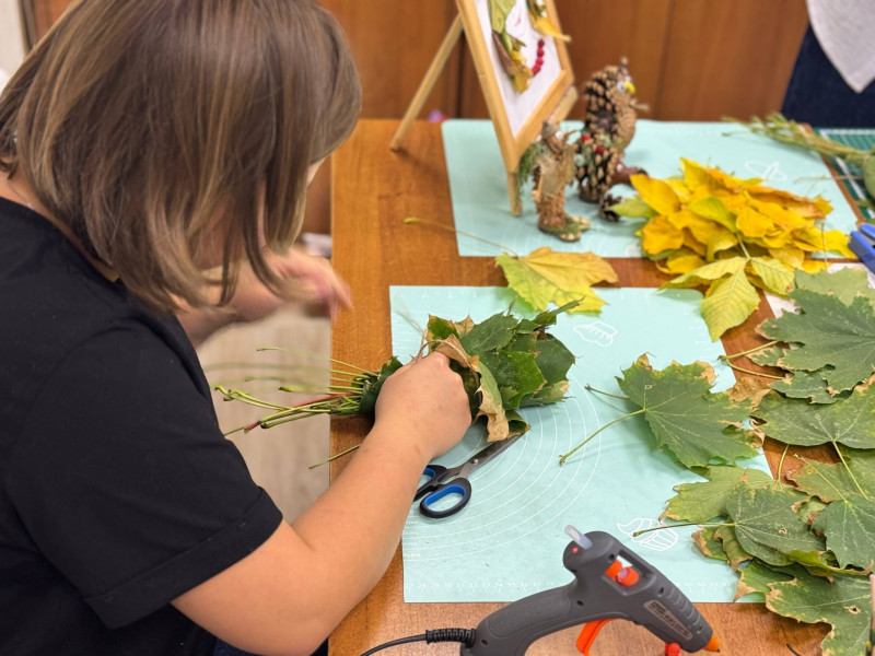 Получатели услуг социально-реабилитационного отделения дневного пребывания собрали самые красивые листья клёна, и мастерили своими руками шикарные букеты.