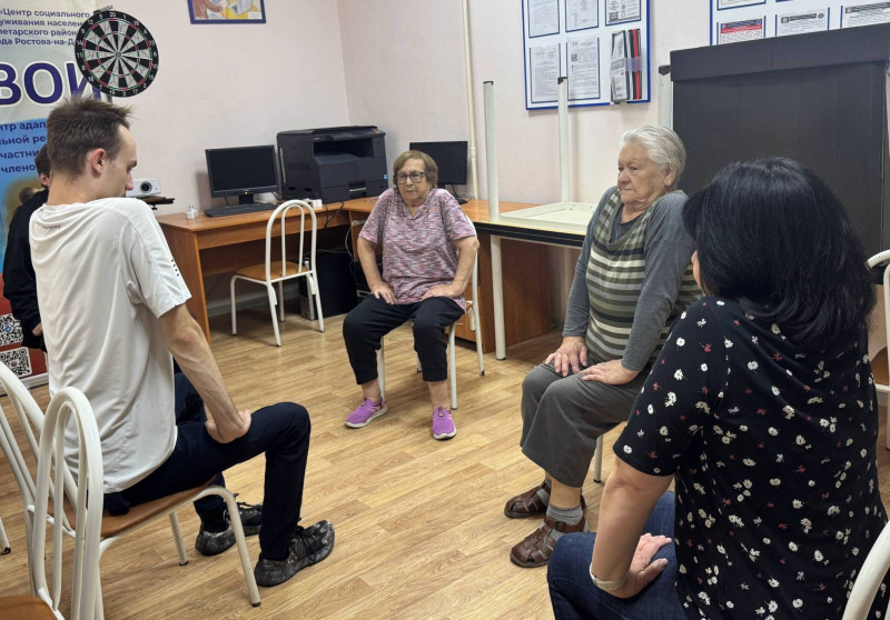 В рамках региональной программы «Активное долголетие» и городского проекта «Время активных» для получателей социальных услуг социально-реабилитационного отделения дневного пребывания центра социального обслуживания населения Пролетарского района города Ростова-на-Дону регулярно проводится дыхательная гимнастика.
