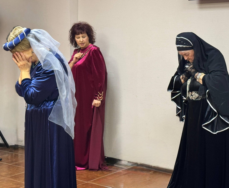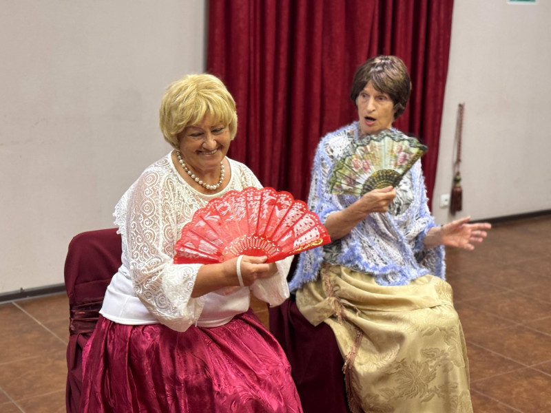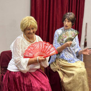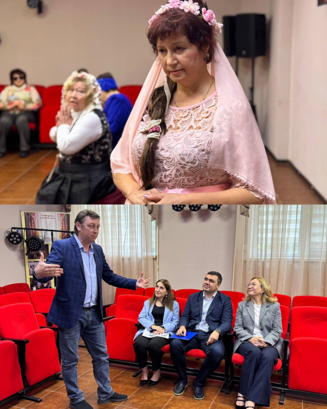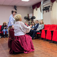 На тематической встрече, на которой отметили День пожилого человека, с элементами театрализованной постановки, где показали некоторые сцены театральных постановок.