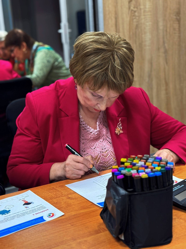 Активистки старшего поколения проходили учебный курс «Качества финансово грамотного человека», в котором участники проходили задания с различными ребусами, раскрасками и даже финансовым кроссвордом.
