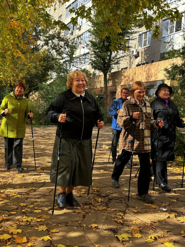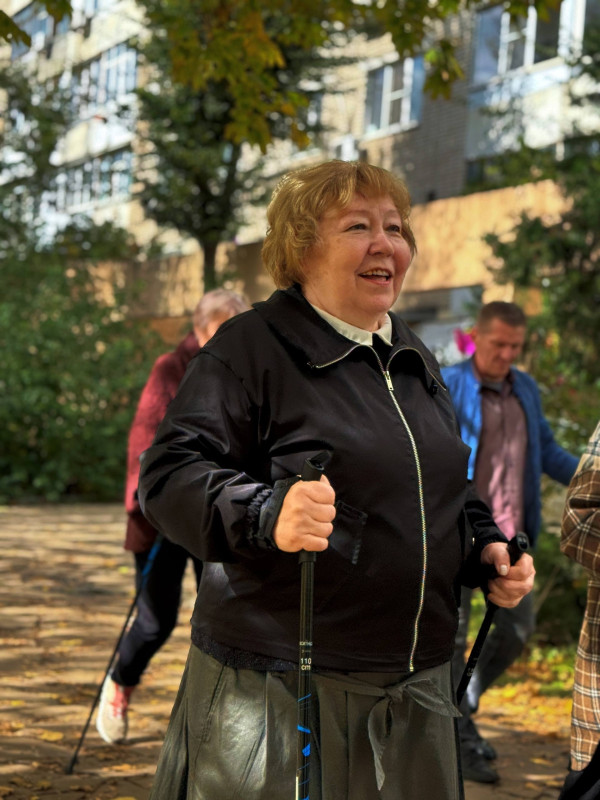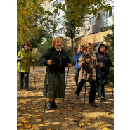 Сегодня «серебряные» волонтеры занимались скандинавской ходьбой. Многие из получателей освоили активную ходьбу уже давно, но были среди них и те, кто только учился этому простому на первый взгляд занятию.