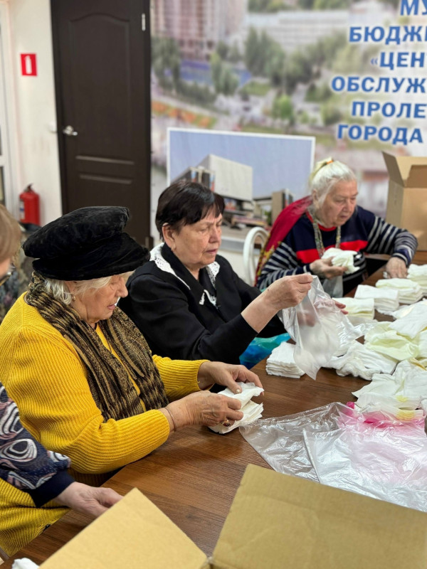 В рамках региональной программы «Активное долголетие» и городского проекта «Время активных» в центре адаптации и социальной реабилитации участников СВО и членов их семей «СВОИ» «серебряные» волонтеры продолжают помогать фронту. Неравнодушные получатели социальных услуг центра социального обслуживания населения Пролетарского района города Ростова-на-Дону сворачивали медицинские салфетки для участников спецоперации и раненых бойцов, находящихся в госпиталях.