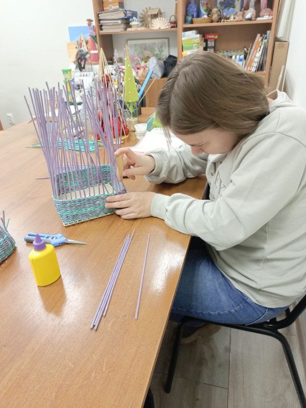 Плетение из бумажной лозы погружает в процесс творчества, облегчает умственное напряжение, помогает отвлечься от проблем и найти новое вдохновение. Это занятие открывает получателям социальных услуг мир творческих возможностей, развивает навыки и дарит счастье созидания.
