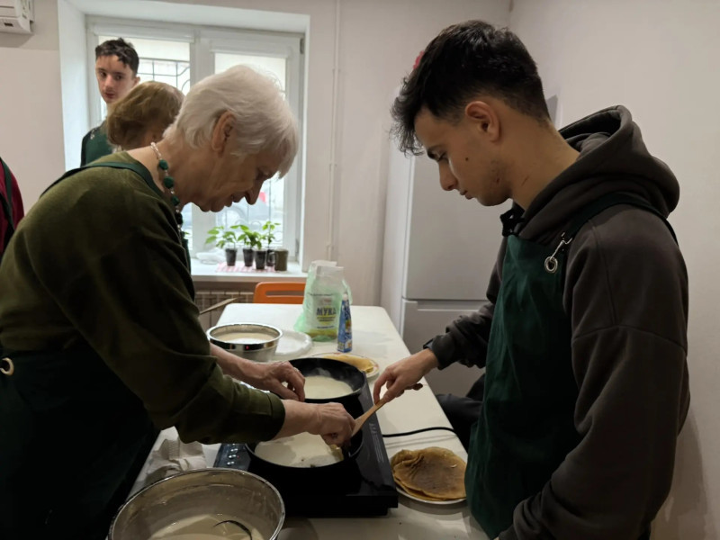 Добровольцы старшего возраста показали мастер-класс по выпеканию блинов и вместе с детьми с ограниченными возможностями здоровья из РГООИ «Надежда» приготовили блины. Бабушки поделились своими секретами приготовления вкусных блинов, а ребята получили бесценный опыт кулинарного мастерства от старшего поколения.