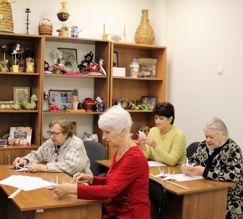 В преддверии «Праздника белых журавлей» активные получатели социальных услуг МБУ «Центр социального обслуживания населения Пролетарского района города Ростова-на-Дону» приобщились к традиции складывать бумажных журавликов в технике оригами. Мастерицы факультета «Умелые ручки» «Университета третьего возраста» без труда смастерили более десятка журавликов, ведь делали они это с особым трепетом и уважением. Чтобы сделать символ счастья своими руками, необязательно нужно родиться и вырасти в Японии - схему его создания может понять и воспроизвести каждый.